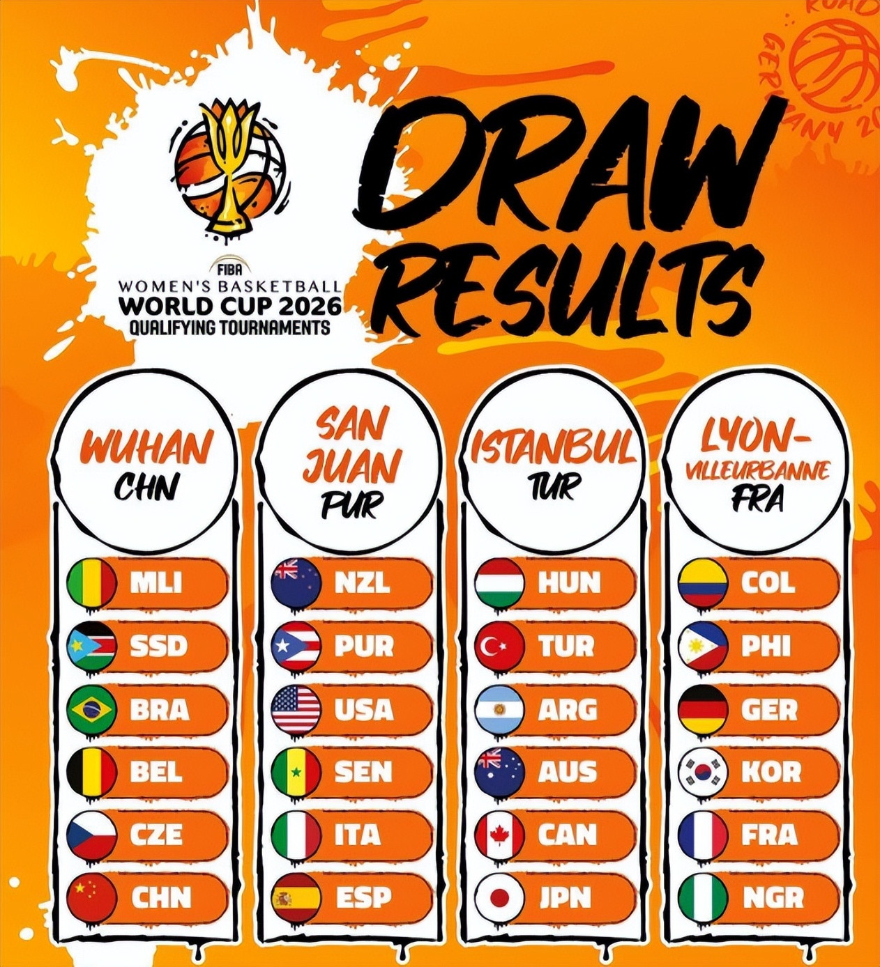 2026 年女篮世界杯预选赛分组抽签结果,在瑞士尼翁正式揭晓。